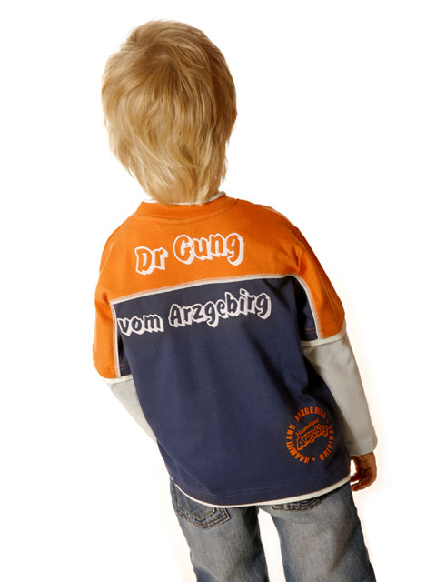 Bis zur Größe 98/104 mit Druckknöpfen am Halsausschnitt.
